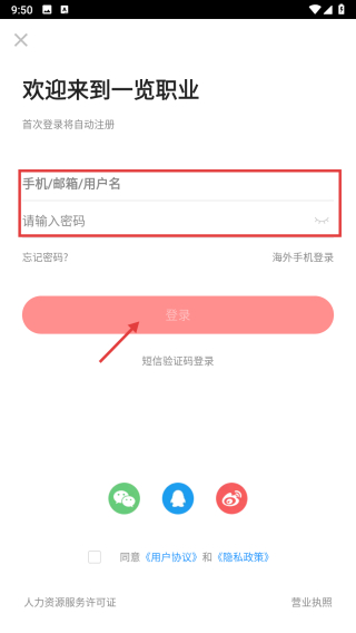 4、在账号密码登录页面,输入账号、密码后点击登录按钮,完成账号登录操作。