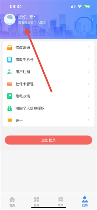 2、在个人页面,点击查看或编辑个人信息区域,进入个人基本信息页面。
