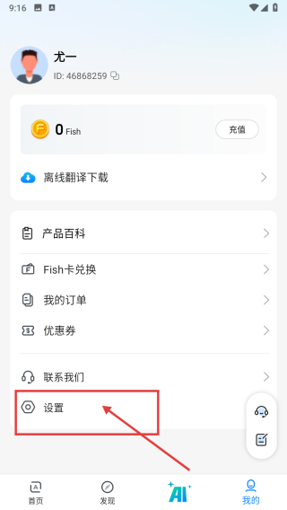 2、在个人中心页面,点击设置选项,进入设置界面。