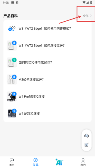 2、在发现页面,点击产品百科的全部选项,进入选择产品页面。