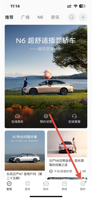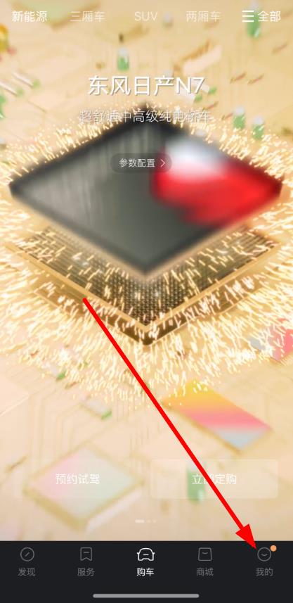 1、打开东风日产app,点击右下角我的选项,进入个人页面。