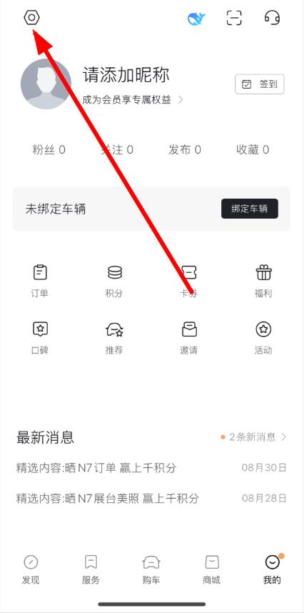 1、打开日产智联app,点击底部导航栏中我的选项进入个人中心页面。