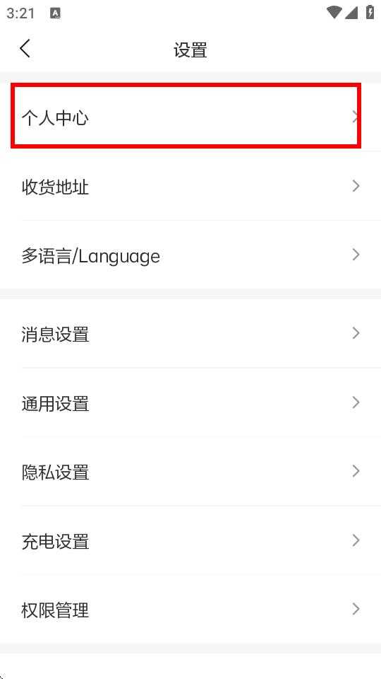 2、在设置界面中,点击个人中心选项。