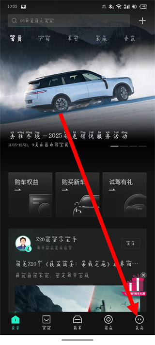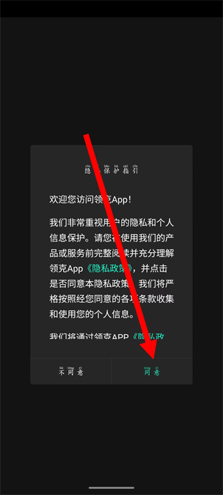 1、打卡领克汽车,在隐私保护指引弹窗中点击同意。