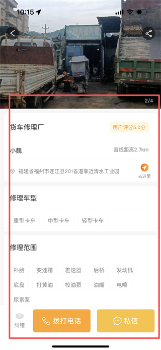 3、在修理厂详情页面,可选择联系方式,与修理厂取得联系。
