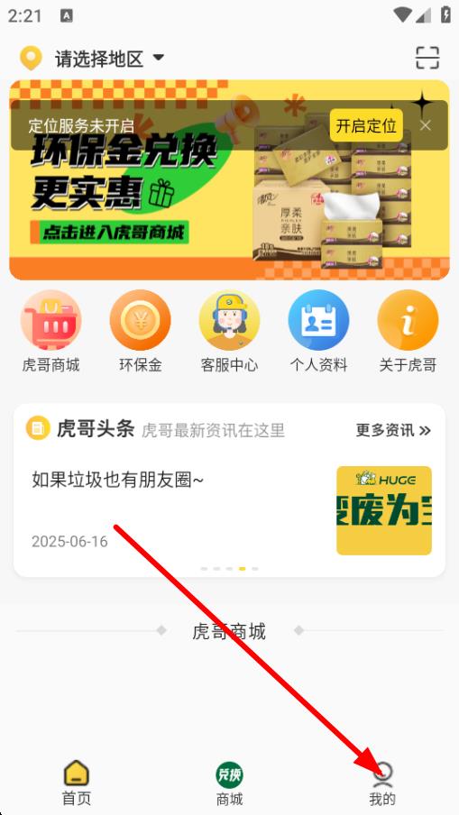 1、打开虎哥回收app,点击底部导航栏中的我的进入个人页面。
