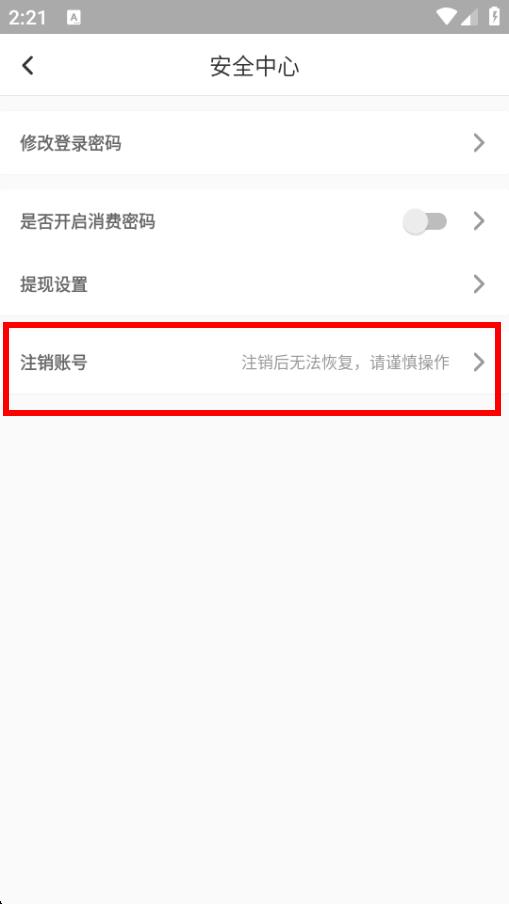4、进入安全中心页面后,点击注销账号,按照提示完成相关操作即可,注意注销后账号无法恢复请谨慎操作。