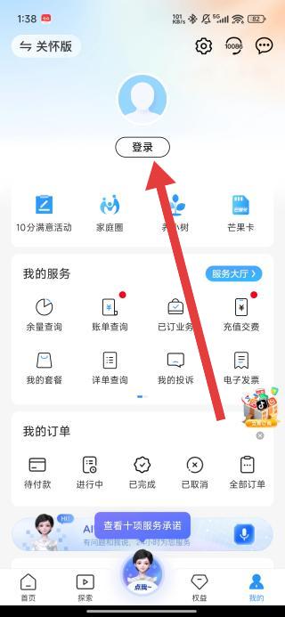 3、进入个人中心后,找到登录入门点击顶部登录按钮,启动账号登录流程,以便使用更多专属服务。