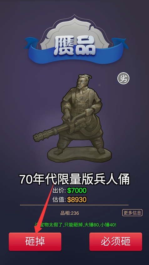 4、确认藏品为真品后完成支付交易操作,将宝物纳入个人收藏馆,赝品则砸掉。