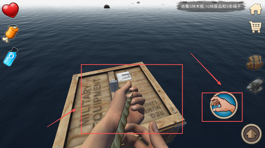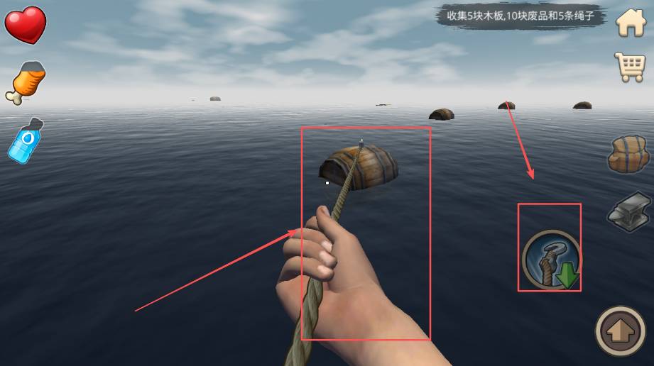 2、收集海上漂浮的各种资源材料物品,制作生存必需的工具和装备,掌握资源管理和配置技巧,优化生存效率和成功率,提高应对能力。