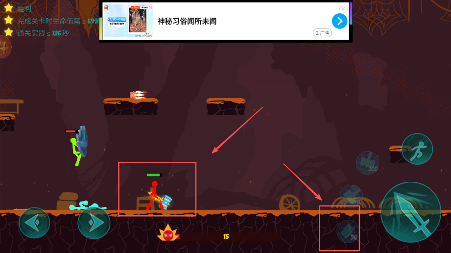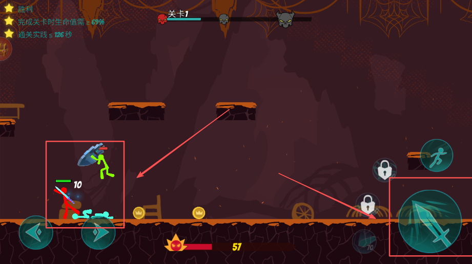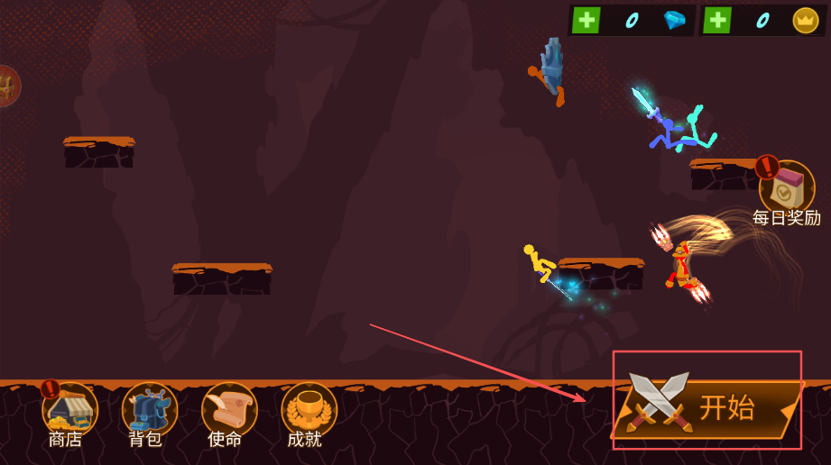 2、操控火柴人角色移动攻击使用技能,掌握基本动作和连招技巧,学习战斗策略和时机把握,提高操作水平和战斗效率。