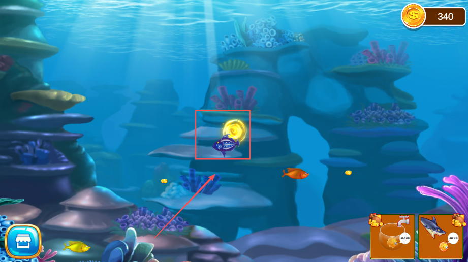 2、控制小鱼游动觅食寻找目标,吃掉更小的鱼类获得成长,掌握进食时机和策略选择,优化成长速度和进化效率。