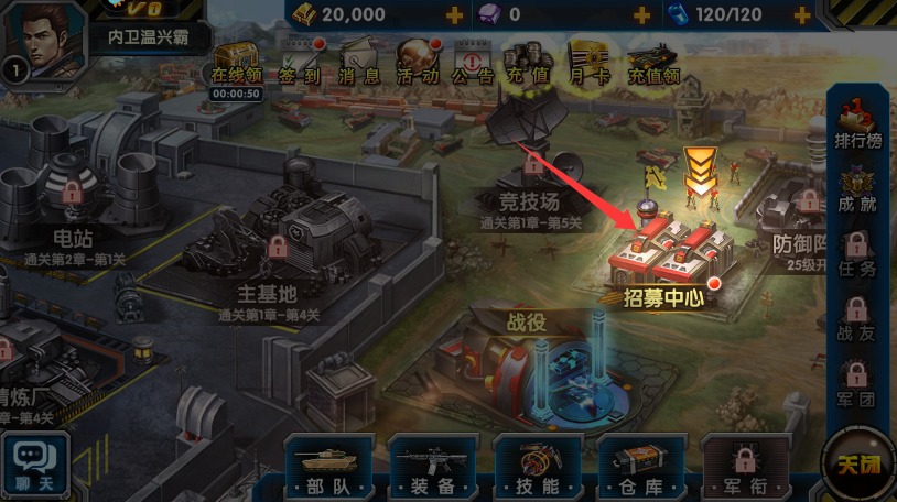 2、返回主界面点击招募中心功能选项进入,在此处招募各类强力的作战同伴成员。