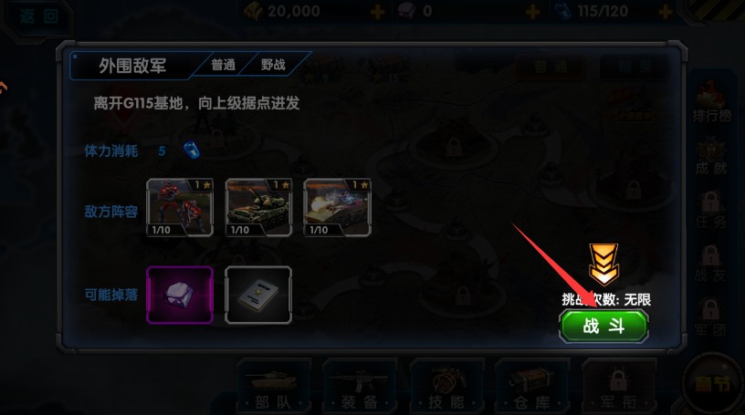 4、最终点击进入战斗开启实战具体关卡,指挥你的部队夺取战场最终胜利成果。