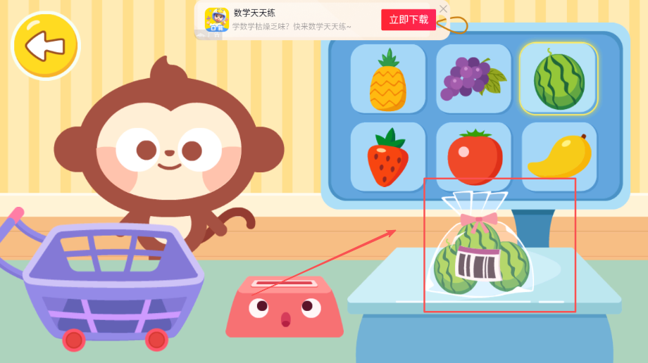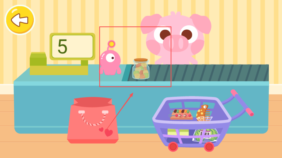 3、完成商品选择后前往收银台,练习计算商品总价,学习基础数学运算,培养理财意识和金钱概念。