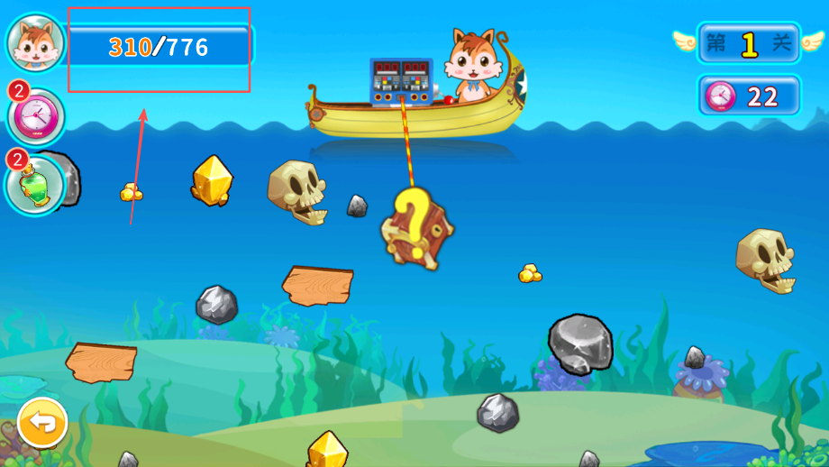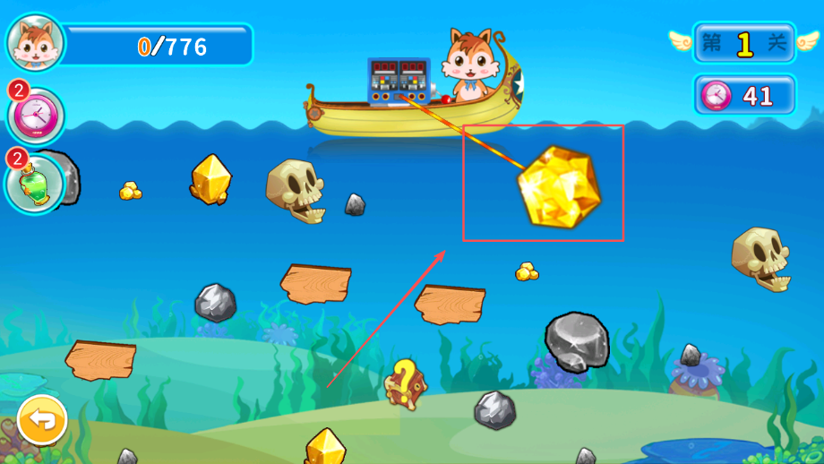 1、通过仔细观察抓钩摆动节奏和轨迹,选择最佳时机发射捕获目标宝物,有效锻炼孩子的手眼协调能力和反应速度。