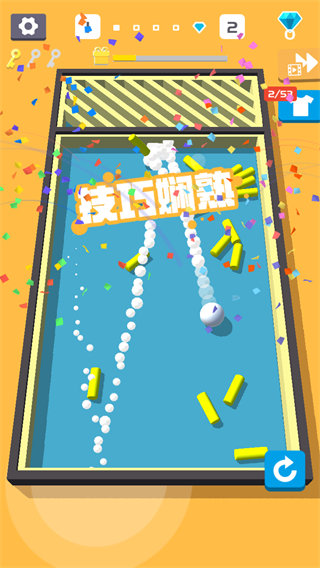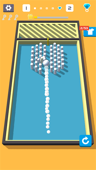 借助物理碰撞原理设计关卡,小球的撞击轨迹与力度相关,需要简单预判与规划,让挑战既轻松又带有一定的策略性。