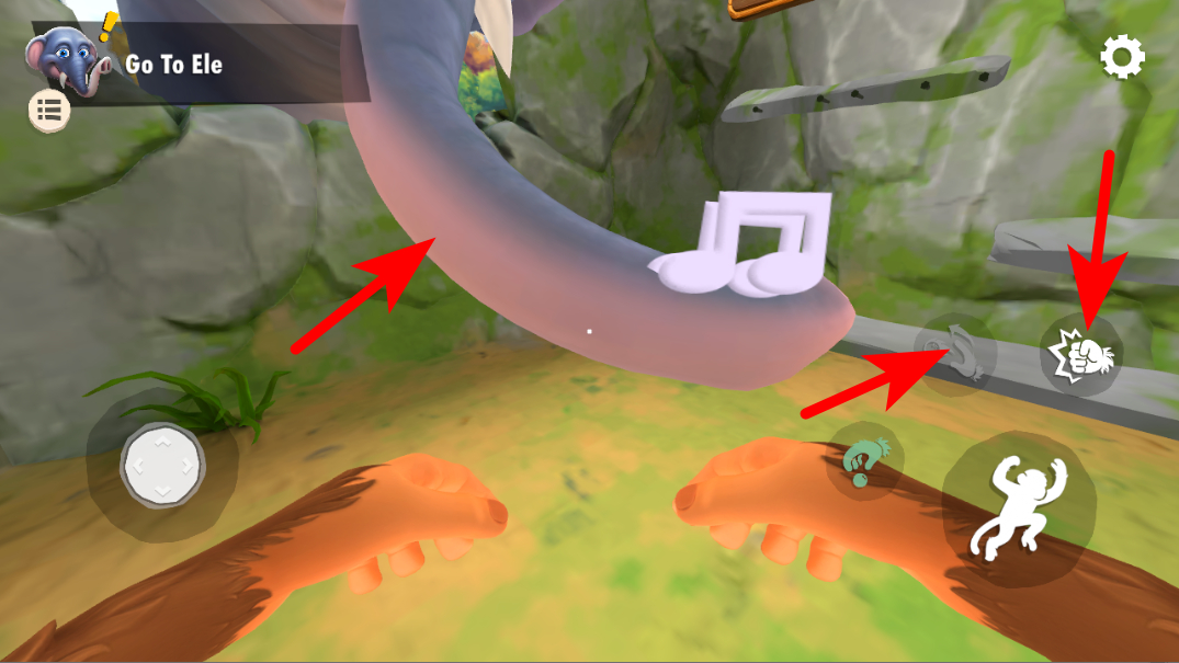 2、左侧虚拟摇杆用于控制猴子移动,右侧猴子图标按钮可触发猴子的动作。