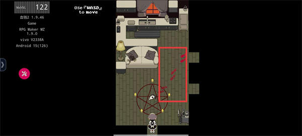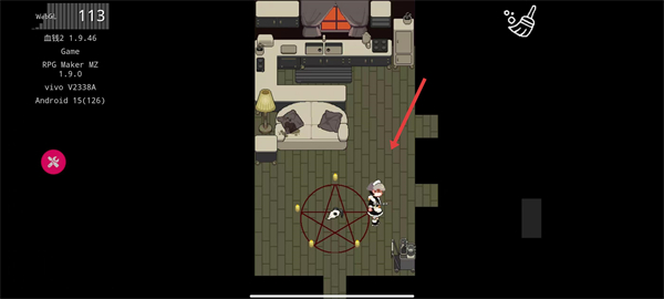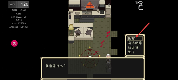 4、移动角色到血迹区域,拖把会自动清理血迹。