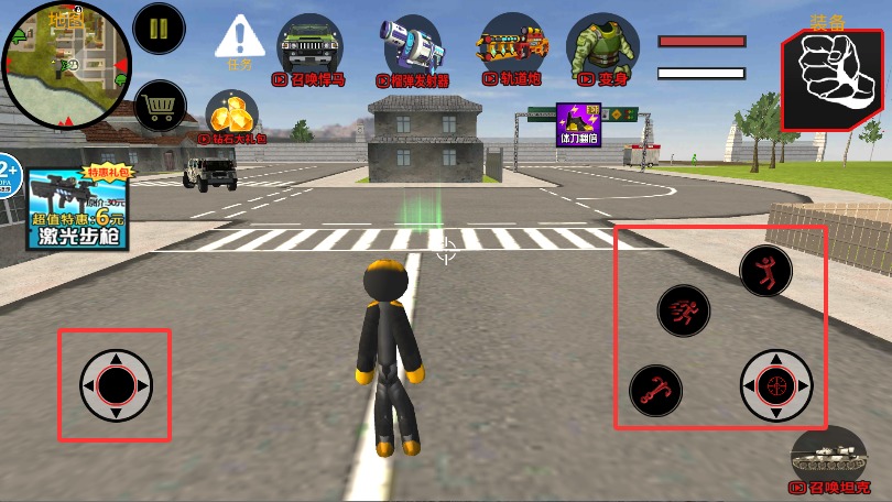 2、左侧虚拟摇杆控制角色移动方向,右侧按键负责攻击、跳跃与奔跑等动作。