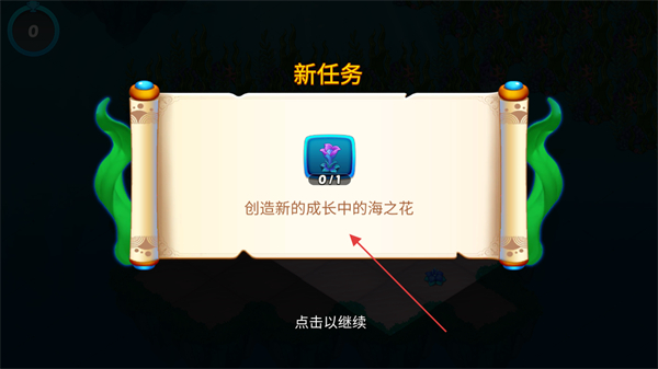 1、接收新任务,需创造1个成长中的海之花,点击继续开始任务。