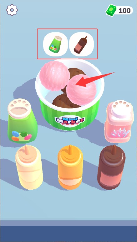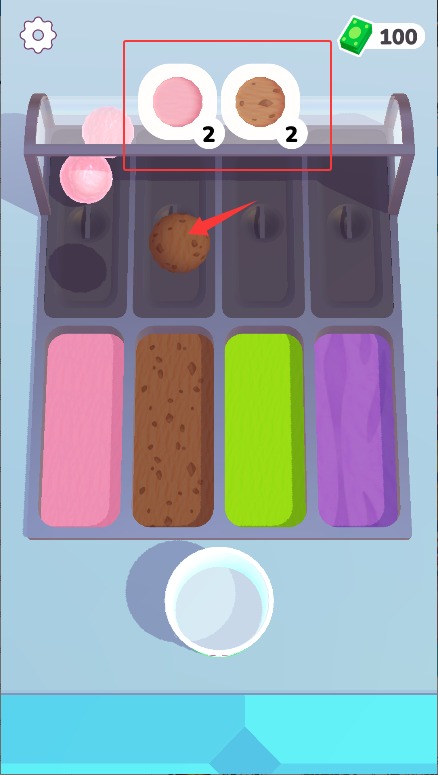 3、滑动屏幕控制冰淇淋机出料口,将指定数量的冰淇淋球完整装入顾客的餐碗中。