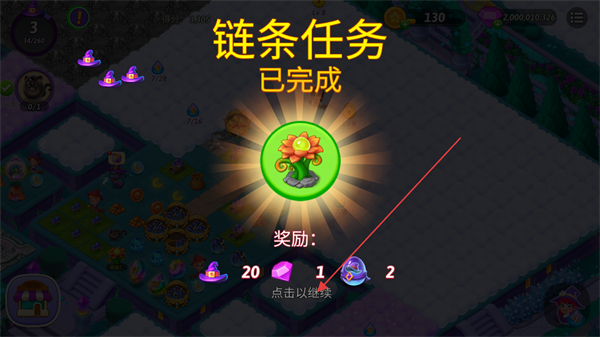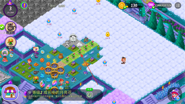 2、合并成长的魔法菇田,使其升级,产生资源,推进任务。