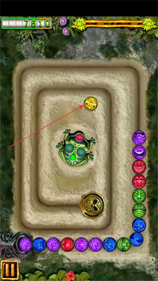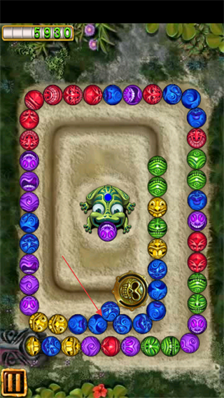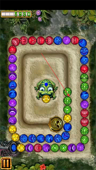 3、通过点击的方式控制祖玛吐出珠子的方向,让相同颜色的珠子进行消除。