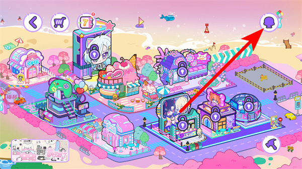 2、在主场景中点击右上角头像图标,进入角色定制界面。