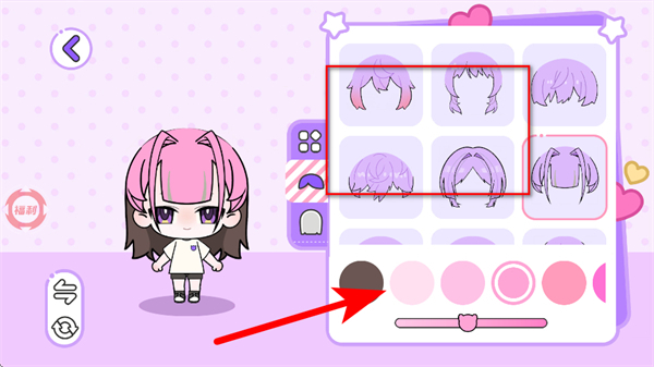 4、在发型创作模块中,选择喜欢的发型样式,还可调整发型颜色,即可完成自己的发型创造。