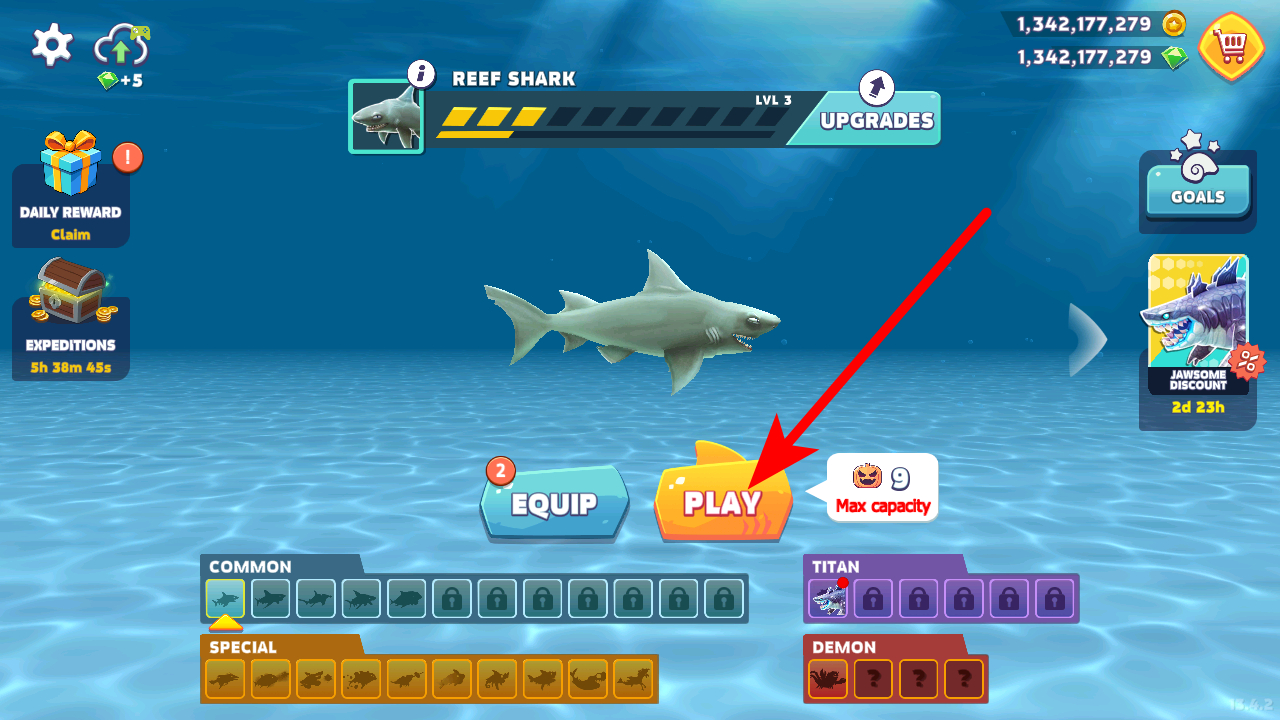 涵盖大白鲨、锤头鲨、核能鲨、机械鲨等近二十种鲨鱼,每种都有独特属性,可通过金币、钻石解锁高级别鲨鱼通过进化获得新品种,满足探索需求。