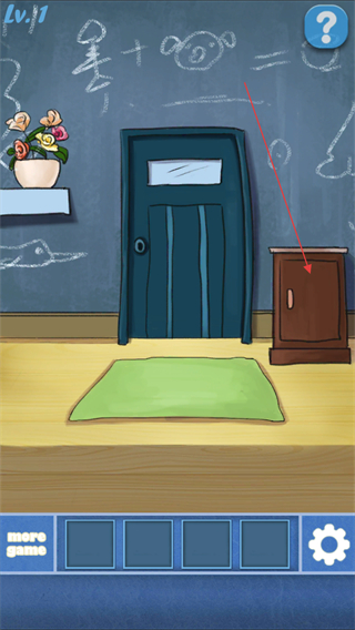 2、进入房间后,点击右侧棕色柜子,获取开门的钥匙。