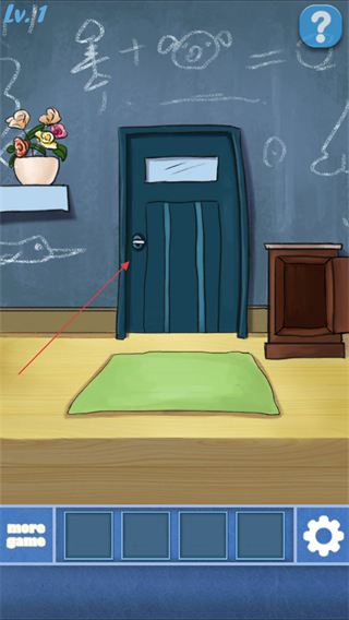 3、找到房间内的蓝色门,点击门上的锁孔,使用钥匙解锁开门。