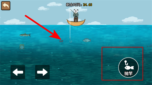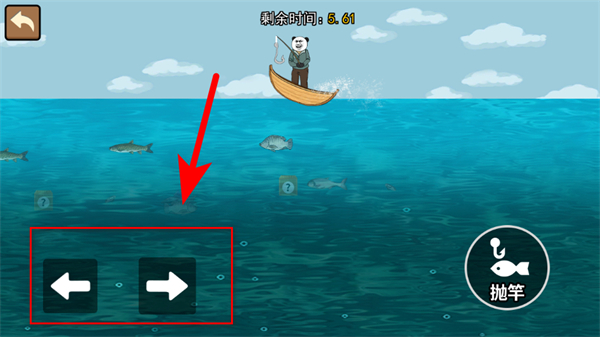 3、在钓鱼界面,通过左右方向键移动小船,寻找鱼群位置。