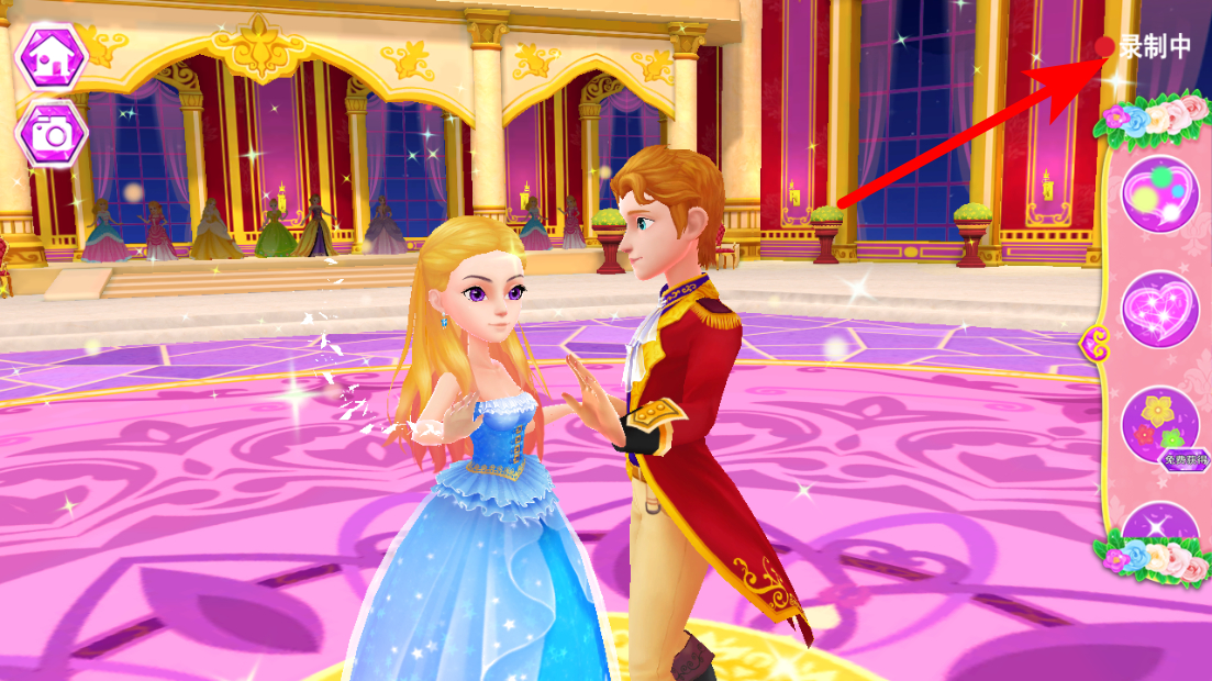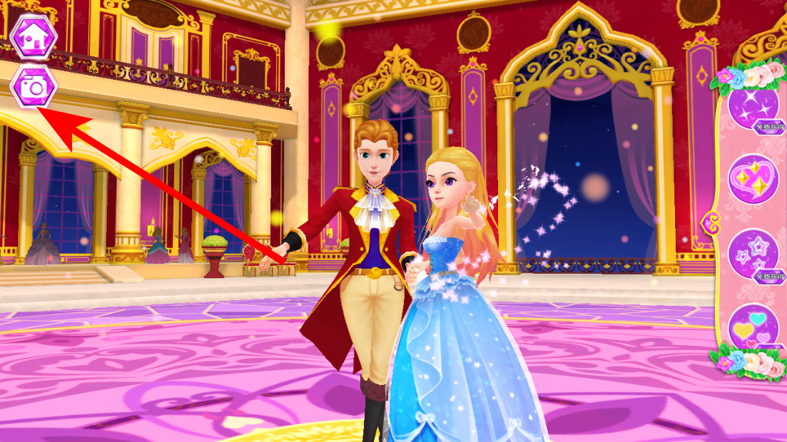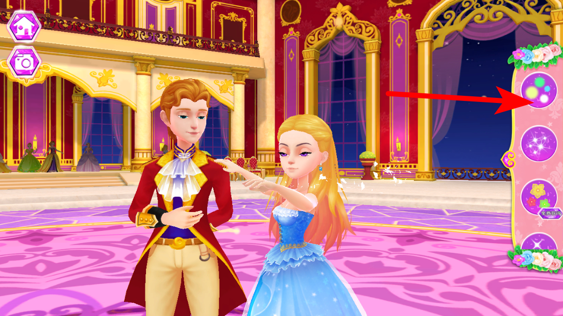 1、在公主的梦幻舞会界面,点击右侧特效选项,添加舞会特效。