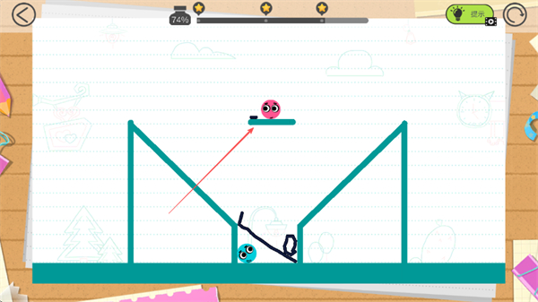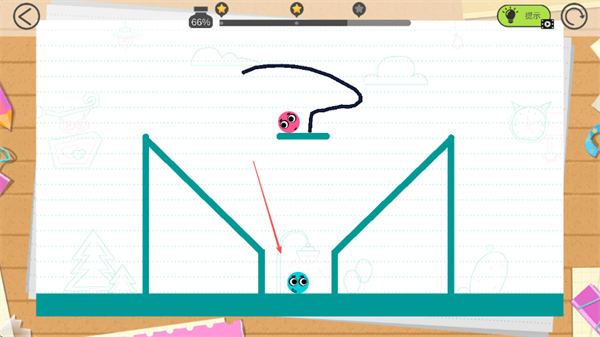 3、通过绘制的线条引导粉色小球下落,与蓝色小球碰撞,完成关卡目标。