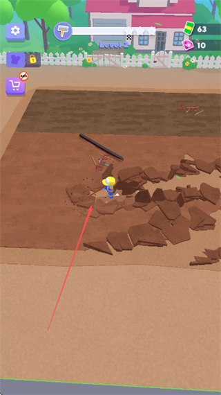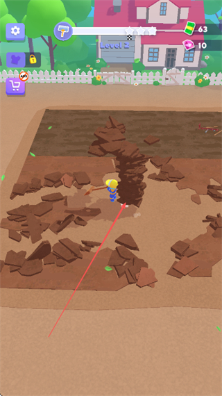 1、操控角色在土地上挖掘,击碎泥土块,收集资源。