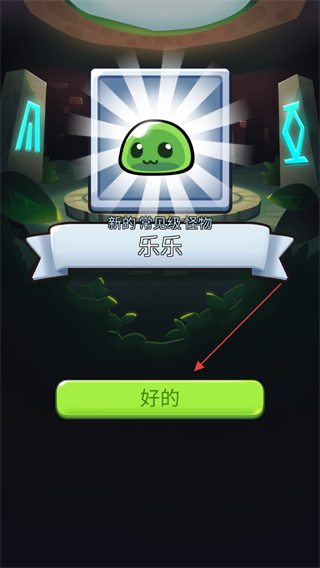 3、获得新的宝贝怪物如乐乐,按照红色箭头指示点击好的确认。