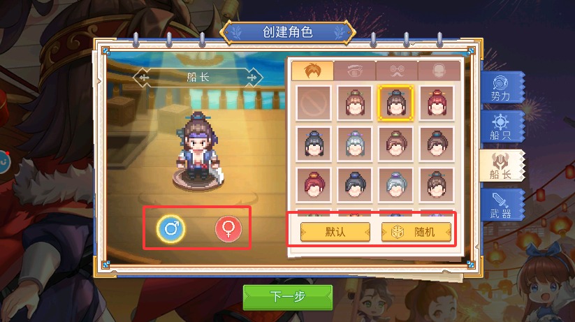 3、为你的船长精心设定性别与外观造型细节,打造具有个人特色的专属航海家形象。