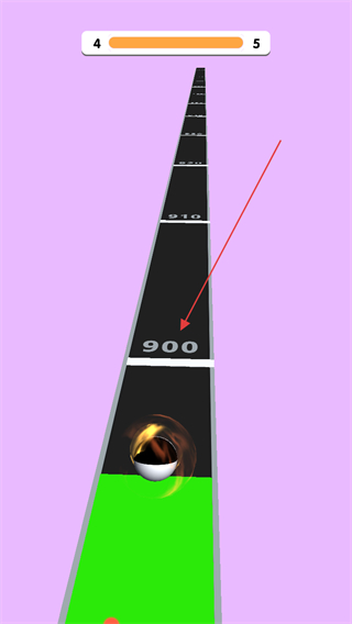 3、在终点轨道上,黑白球持续前进,经过标有数字如900的区域,积累行进距离,完成关卡挑战。