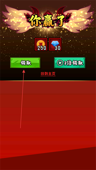 4、消灭所有敌方单位后,即可获胜,获得金币和钻石奖励,点击领取获取奖励,也可选择3倍领取获得更多资源,用于提升己方角色实力。