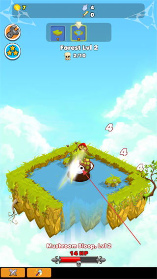 1、在场景中点击怪物进行攻击,击败怪物可获得金币和经验,提升关卡等级如森林等级2、3、4。