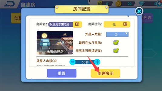 1、点击自创房间按钮进入创建界面,在这里可以设置专属游戏房间并邀请好友加入。