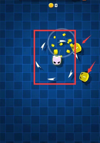 2、通过滑动屏幕控制角色移动方向,利用围绕在身边的旋转飞刃触碰怪物完成击杀。