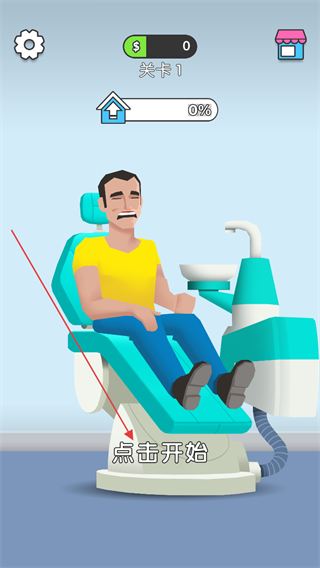 1、点击点击开始,进入关卡1,开始为患者治疗牙齿。