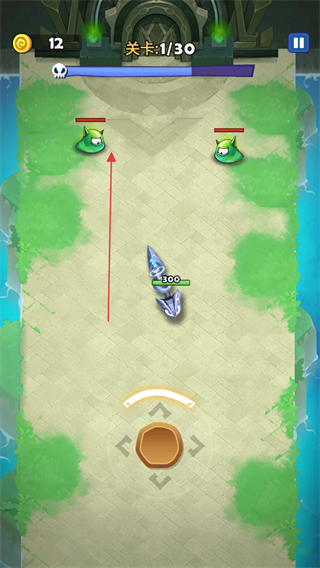 2、遇到绿色怪物敌人时,主动发起攻击,通过碰撞等方式击败敌人。