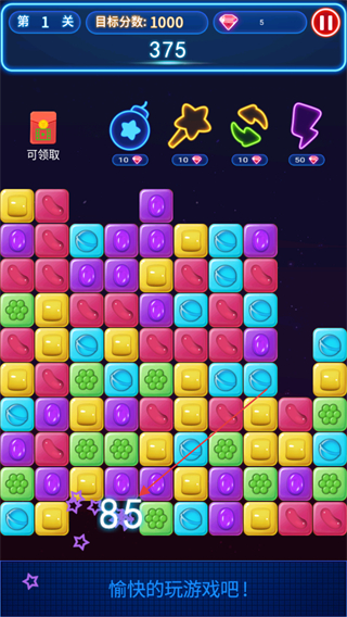 2、通过点击相同颜色的方块进行消除,消除的方块越多,得分越高。