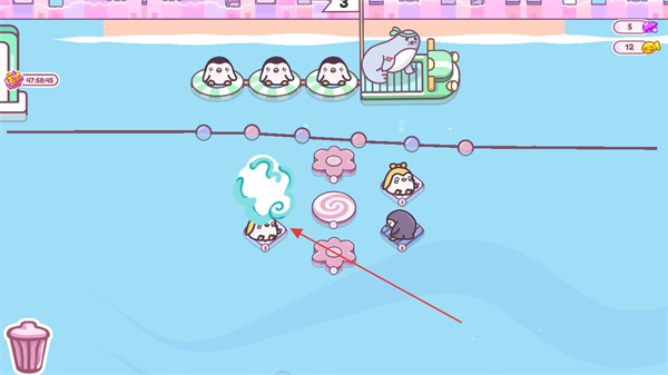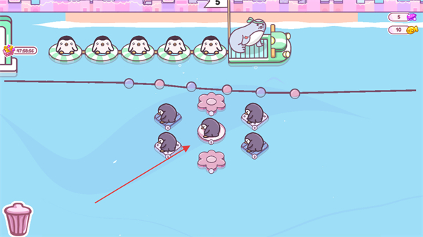 1、在游戏场景中,观察企鹅的分布,通过操作让企鹅移动,收集道具或完成排列。