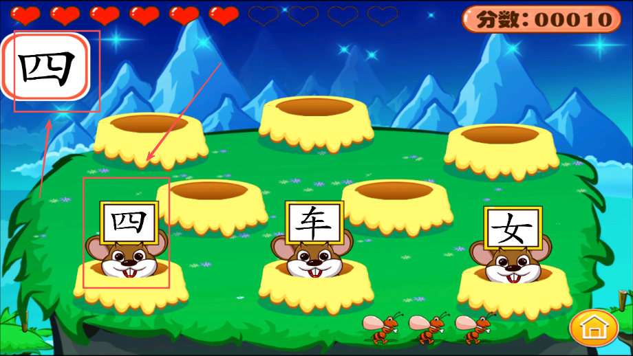 4、通过打地鼠等趣味游戏复习所学汉字内容,在娱乐中加深记忆效果提升学习兴趣,检验学习成果掌握程度。