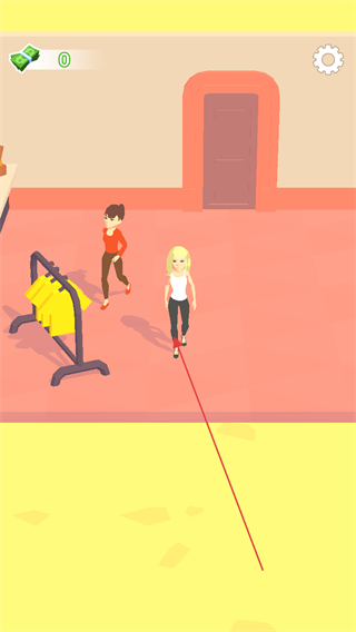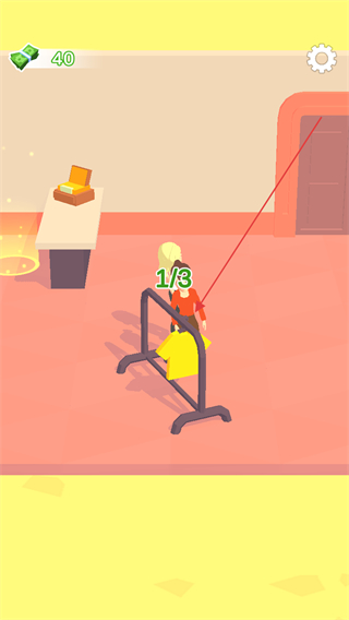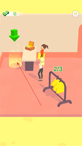 4、继续引导新顾客,如前往服装架区域,完成1/3的服务进度,积累金钱。